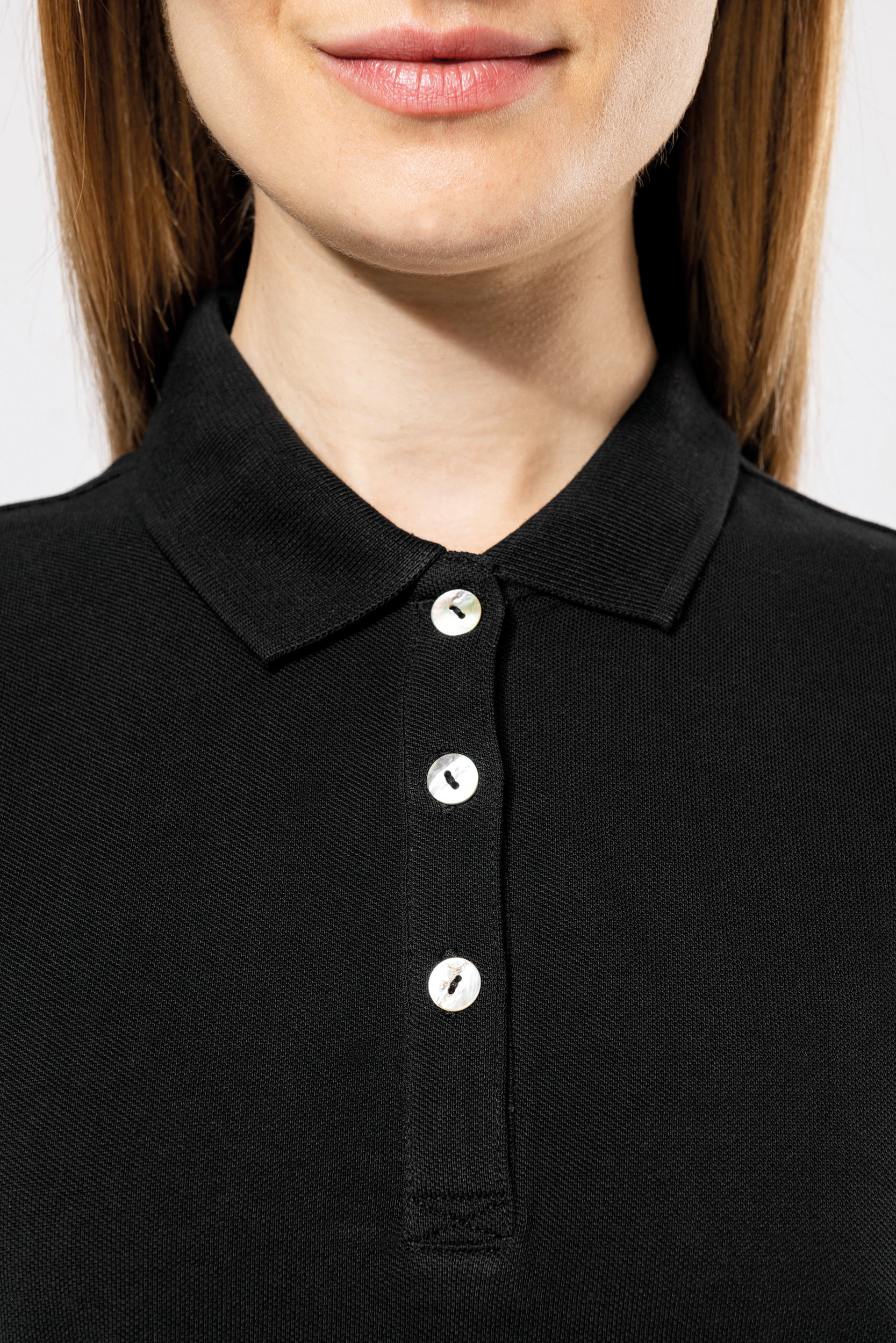 100% katoen. Katoenen piquétricot Supima®. Een verfijnde stof van topkwaliteit. Voelt zijdezacht en aangenaam aan. Getailleerde snit. Kraag in ribboord met contrasterende fantasie-nektape aan de binnenkant. Lijst met 3 knopen van echt parelmoer. Afgewerkt met een fantasienaad onderaan en met ribboord aan de mouwuiteinden. Geen merklabel in de kraag, maar enkel een maatlabel voor eenvoudige personalisatie.