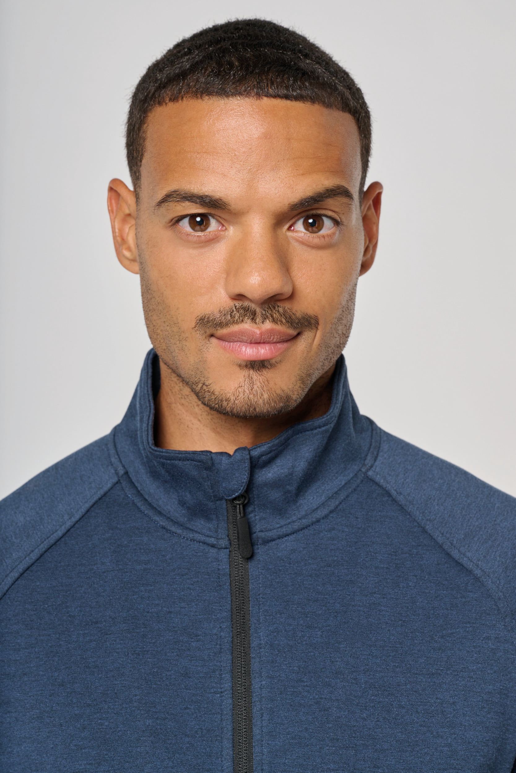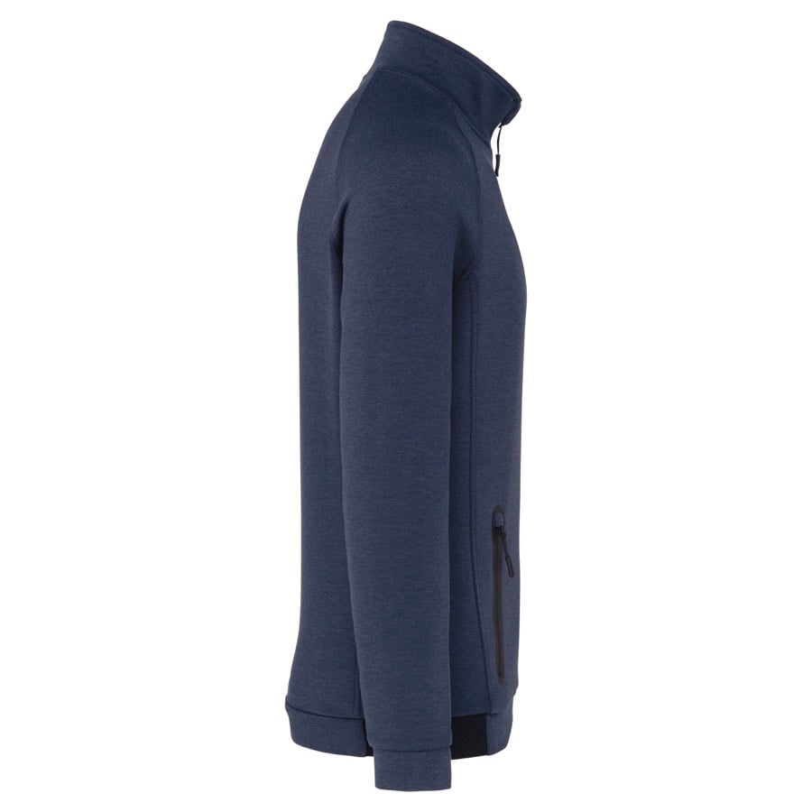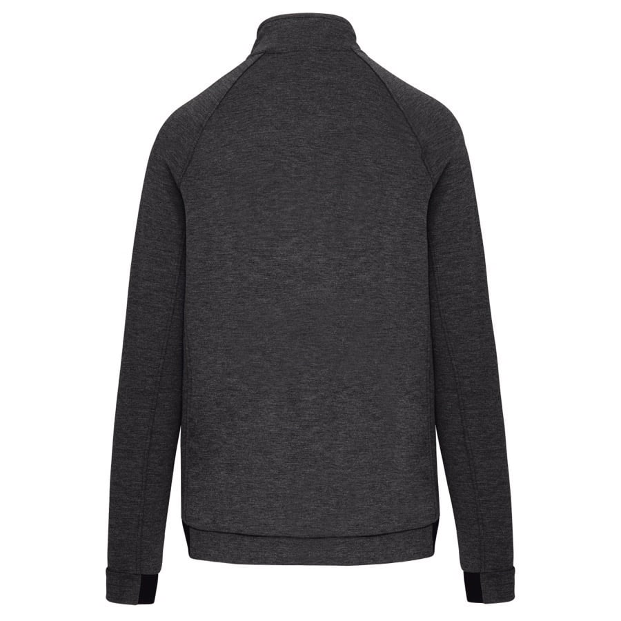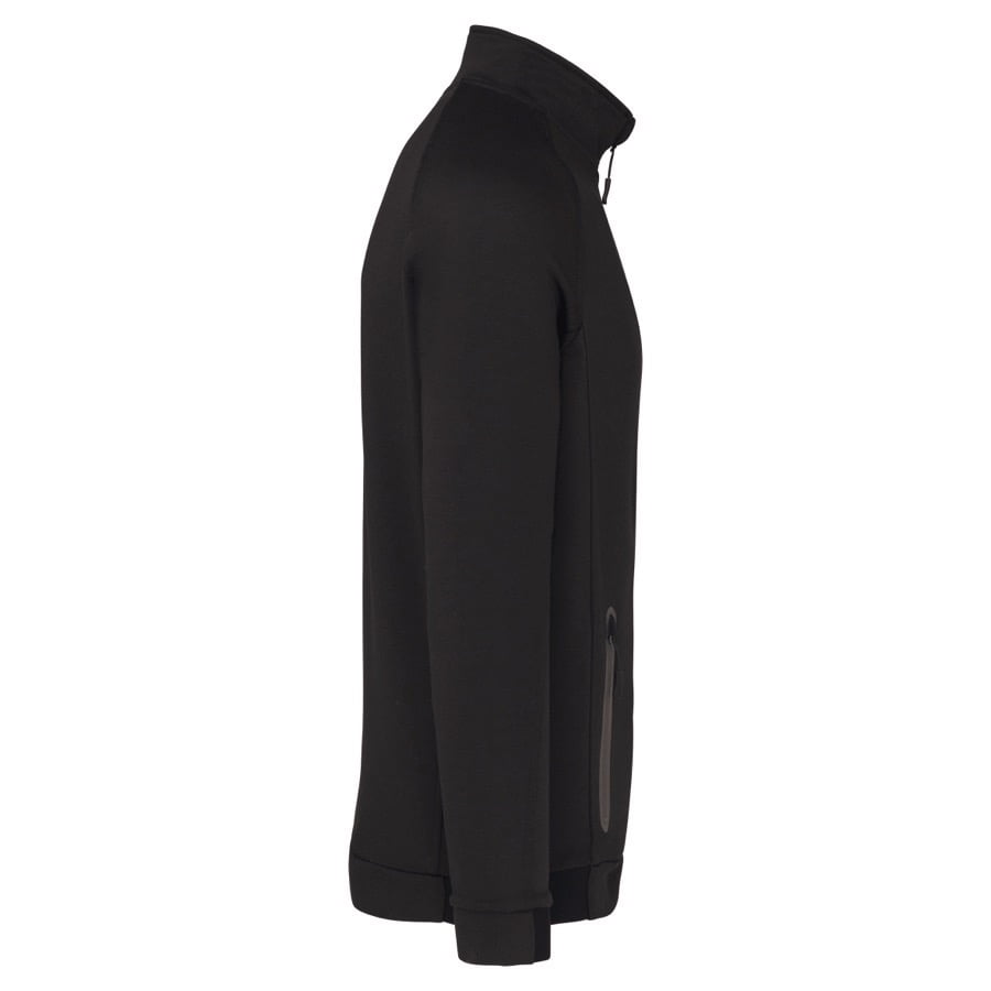 94% polyester / 6% elasthan (79% polyester / 15% viscose / 6% elasthan voor Heather kleur). Hele comfortabele stof. Ritssluiting. 2 ritszakken met warmtegelaste afwerking aan de voorkant. Nauwsluitende boorden aan de mouwen en onderaan, met een elastisch stuk Black op alle kleuren en Dark Grey op de Ash Heather (sluitingen ook). Ideaal om te dragen op trainingsbroek PA1008 in een total Urban Apparel stijl.